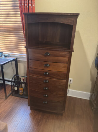 Brought this circa 1907? sewing machine cabinet back to life. It had been damaged by a regrettable paint job and years of …
